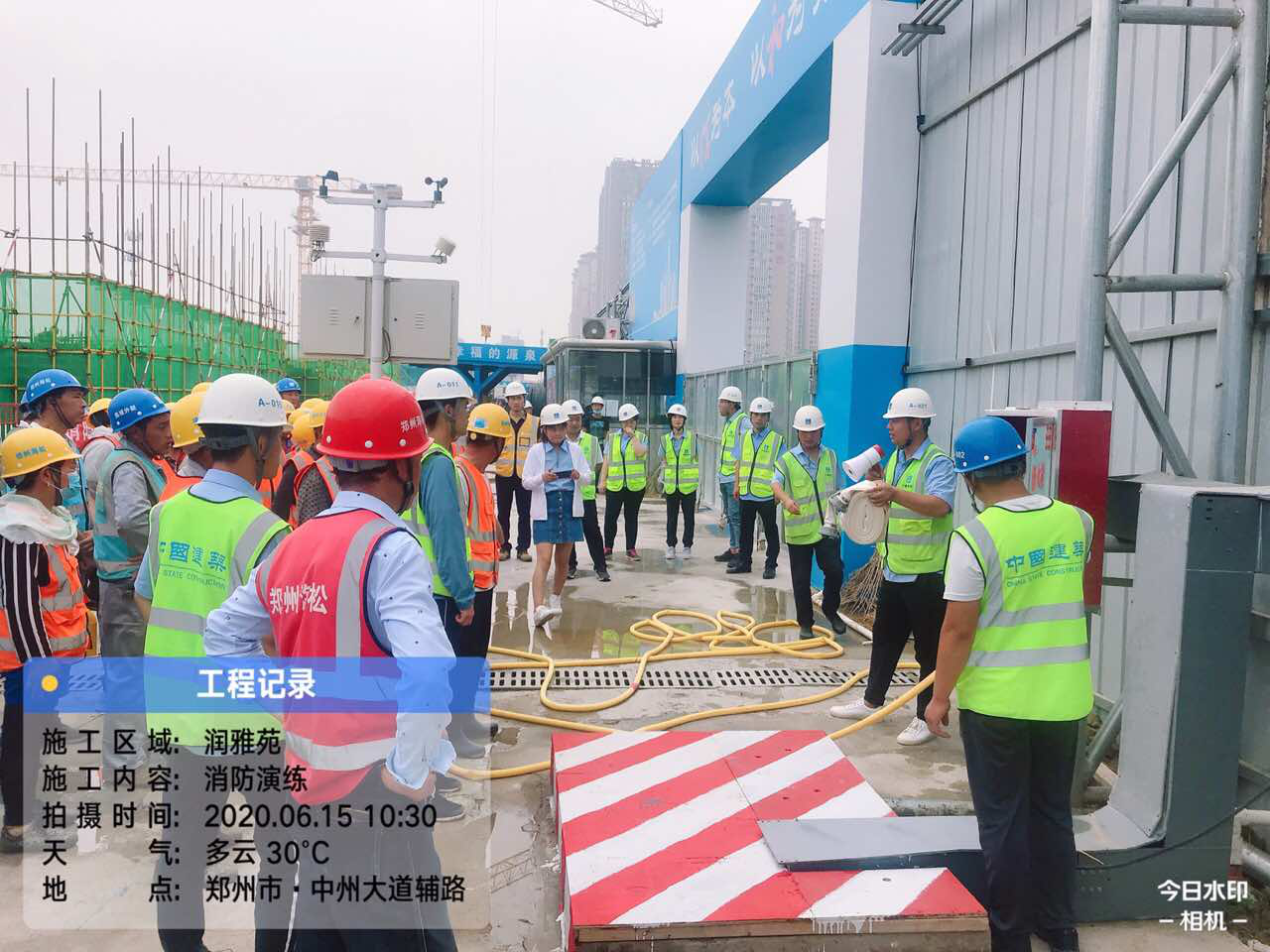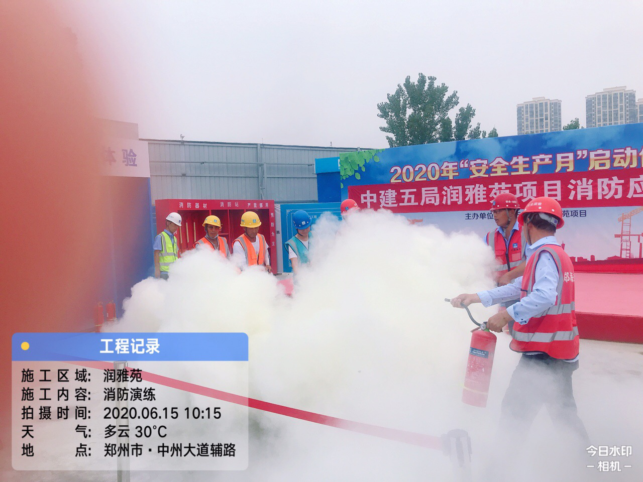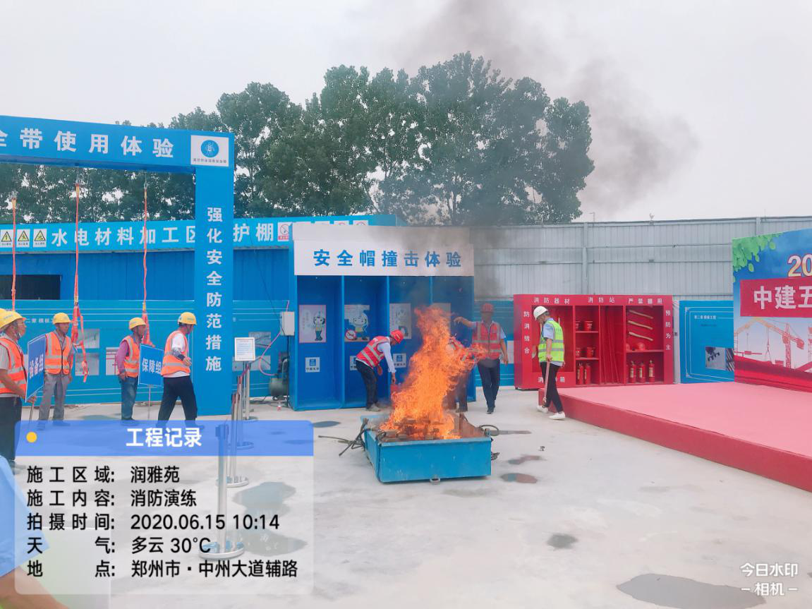為了提高建筑工人的消防安全意識,增強遇火避險應急處置能力,吸取歷年來建筑工地重大火災事故的沉痛教訓,2020年6月15日星期一上午10:00,華潤置地潤雅苑項目舉行消防應急演練活動,通過演練有效預防工地火災事故的發生。