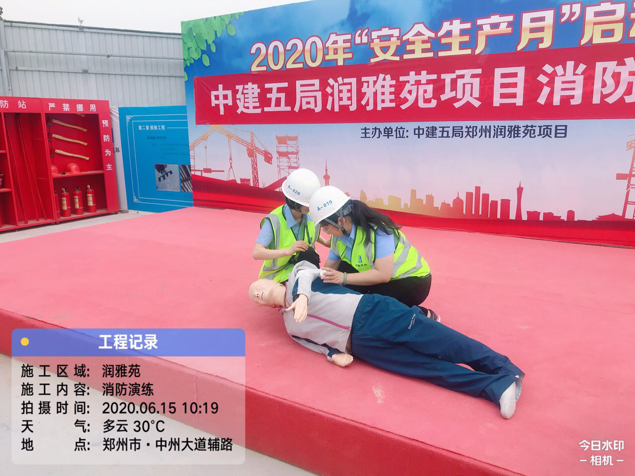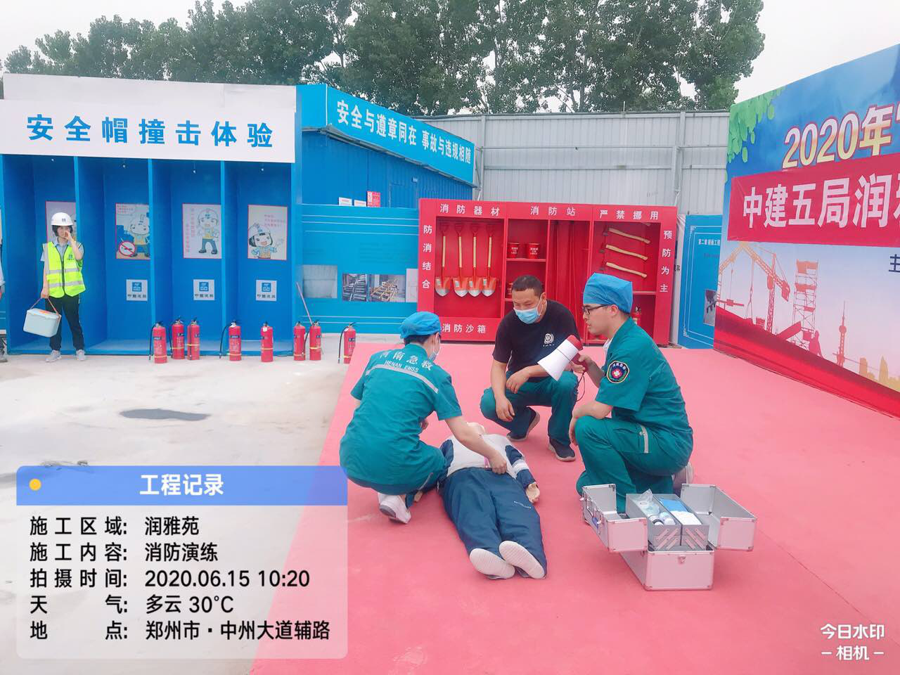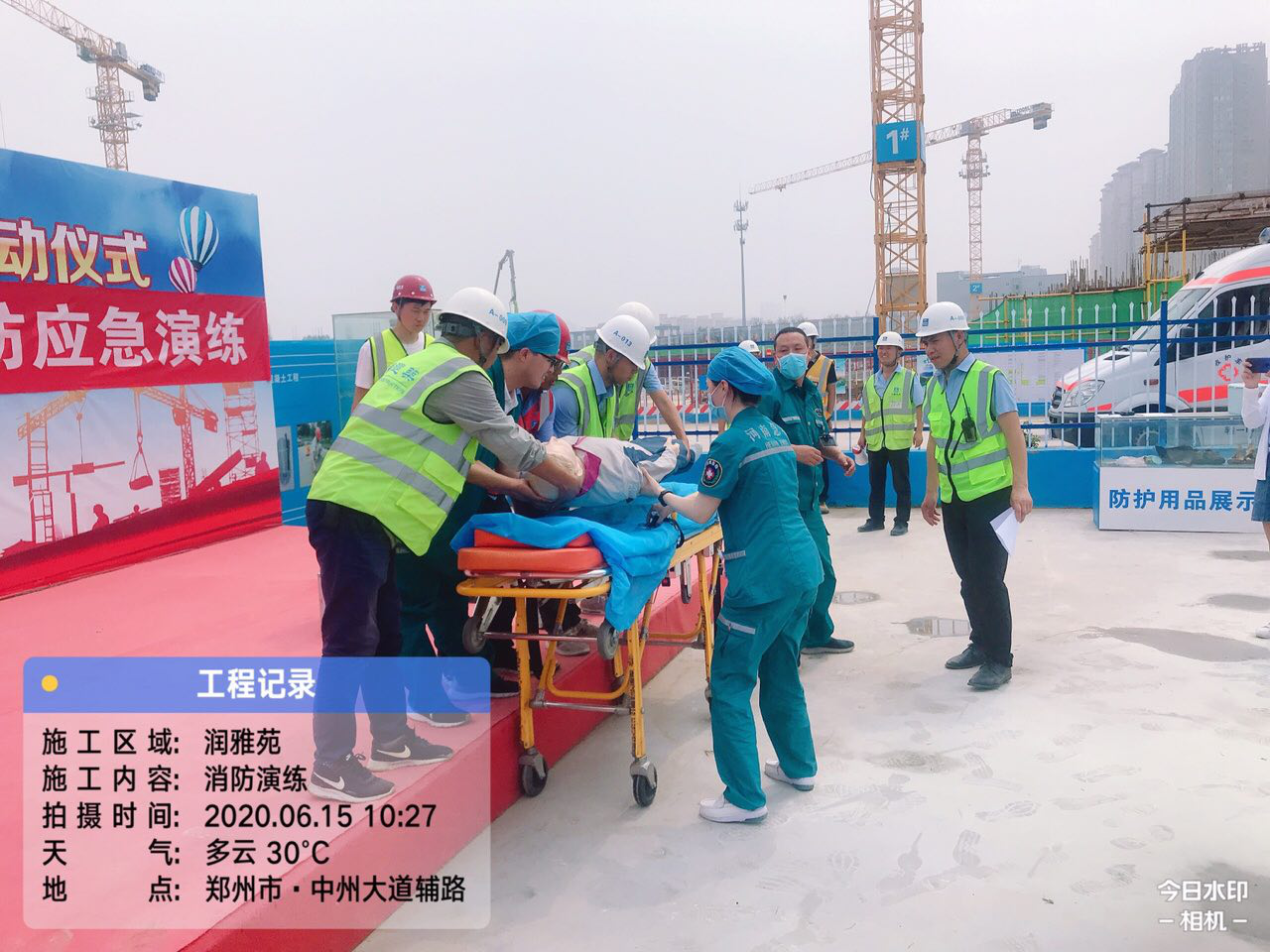 為了提高建筑工人的消防安全意識,增強遇火避險應急處置能力,吸取歷年來建筑工地重大火災事故的沉痛教訓,2020年6月15日星期一上午10:00,華潤置地潤雅苑項目舉行消防應急演練活動,通過演練有效預防工地火災事故的發生。